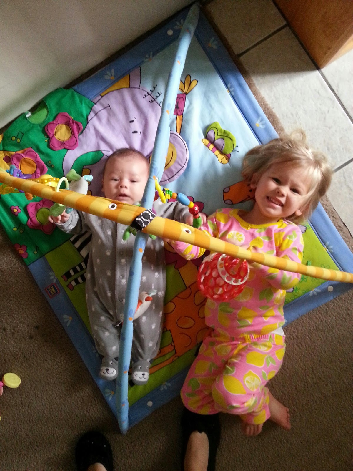 You are sure a smiley talkative baby, tho, when we have a good minute! You are easy to love & talk & coo at anyone who looks at you. Big smiles. Although big sister smiled a lot less at 6 weeks, you look so much like her when you smile!